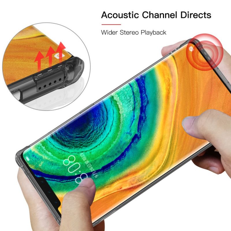 LEEU Designin suunnittelema läpinäkyvä kotelo suojaa Huawei Mate 30: tä erinomaisella materiaalilla, joka tarjoaa suuren joustavuuden.