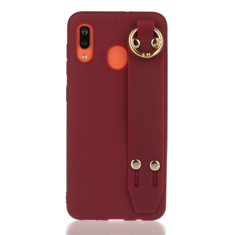 Erinomainen silikonikotelo, joka on varustettu käytännöllisellä hihnalla Samsung Galaxy A40: n kantamiseen. Se toimii myös tukena.