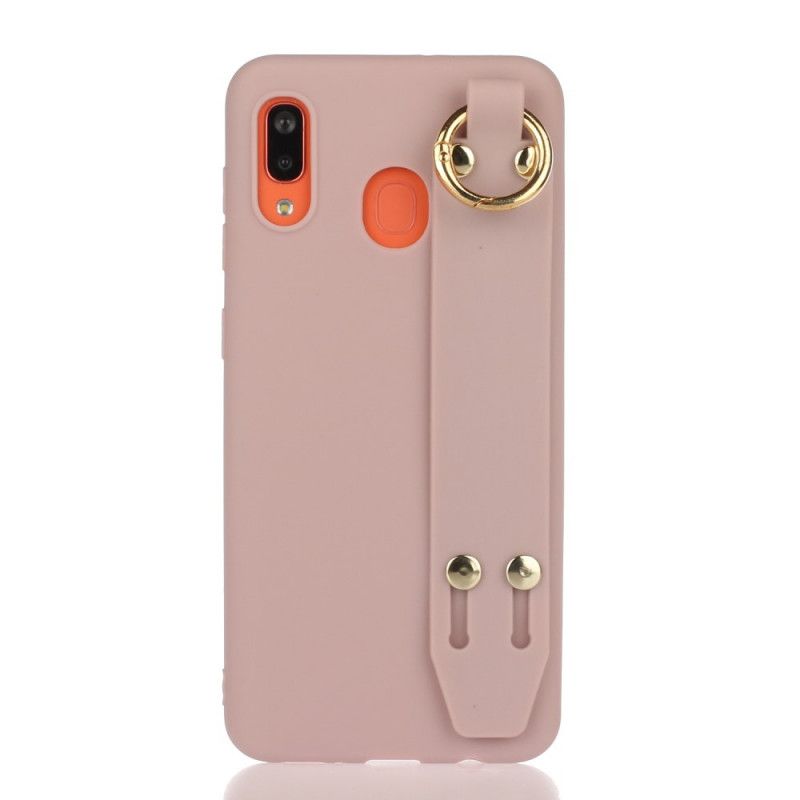 Case Kuoret Samsung Galaxy A40 Vaaleanpunainen Harmaa Puhelinkuoret Silikoni Tukihihnalla