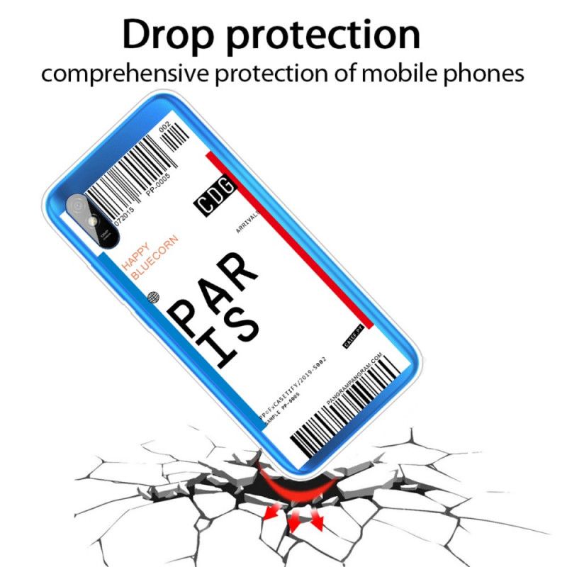 Suuri Bording Pass to Paris -silikonikotelo, jossa on vahvistetut kulmat Xiaomi Redmille 9A kaikista matkustajista.