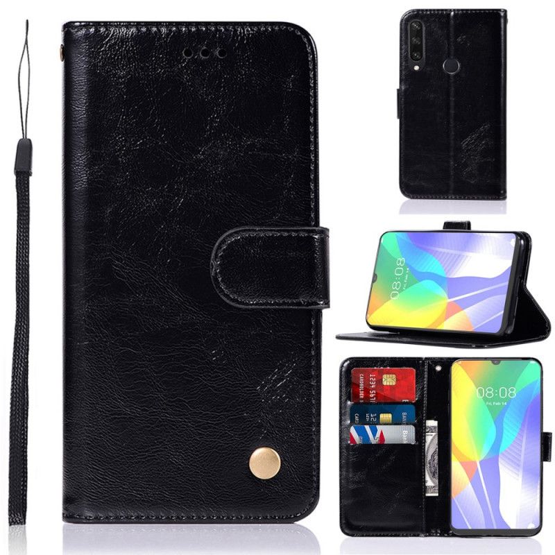 Flip Case Huawei Y6 2019 Punainen Musta Vintage Nahkainen Vaikutus Hihnalla