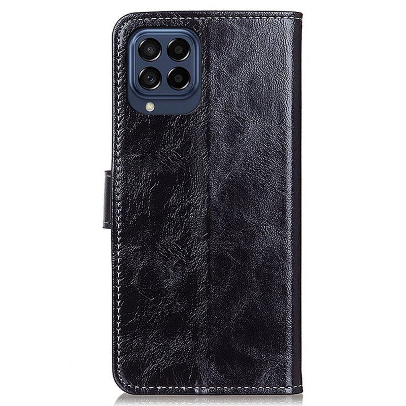 Suoja, Jossa On Näkyvät Saumat, Kiiltävää Keinonahkaa: Klassinen Ratkaisu Samsung Galaxy M53 5G:N Suojaamiseen Koko Päivän Ajan.