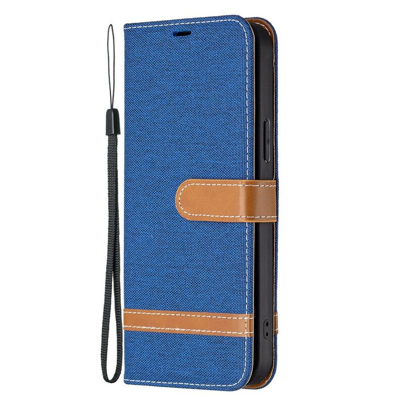 Flip Kotelot iPhone 13 Pro Kangas- Ja Nahkaefekti Hihnalla Suojakuori