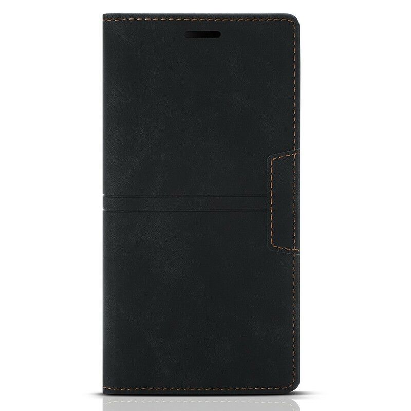 iPhone 13 Pro Max on erittäin hyvin suojattu tällä nahkatyylisellä läppäkuorella, jossa on näkyvät saumat ja magneettilukko.