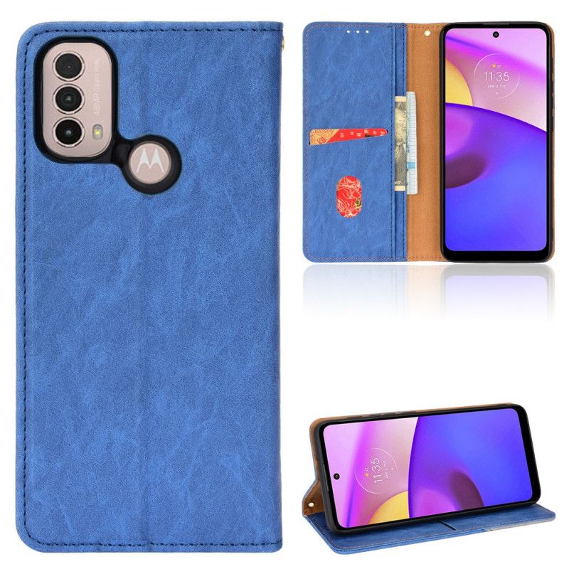 Viisto kaksisävyinen tekonahkainen läppäkansi on ihanteellinen suojaamaan Moto E40 / E30 / E20 tyylikkäästi.