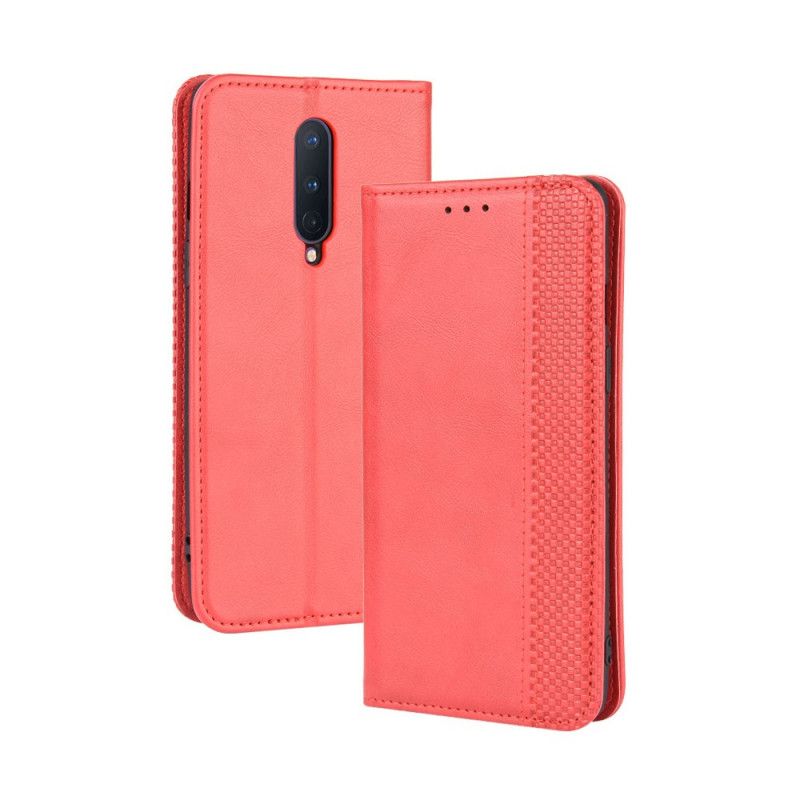Flip Kotelot OnePlus 8 Punainen Musta Tyylitelty Vintage-Nahkaefekti Suojakuori