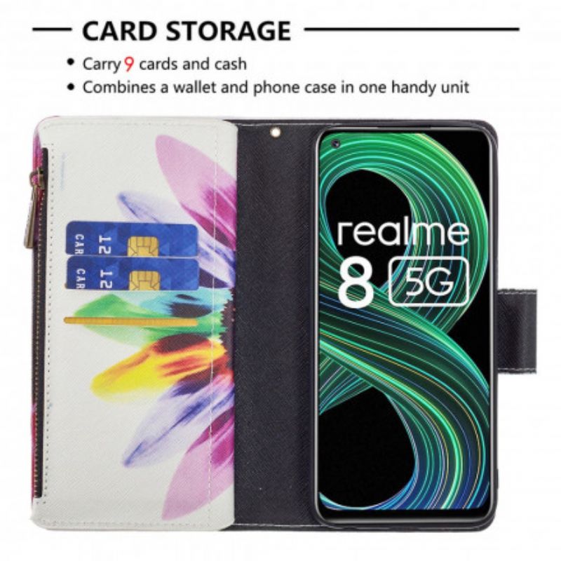 Flip Kotelot Realme 8 5g Kukkavetoketjullinen Tasku Suojakuori