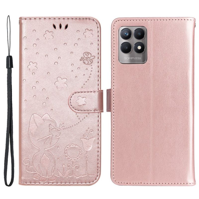 Flip Kotelot Realme 8i Kissa- Ja Mehiläisremmi Suojakuori