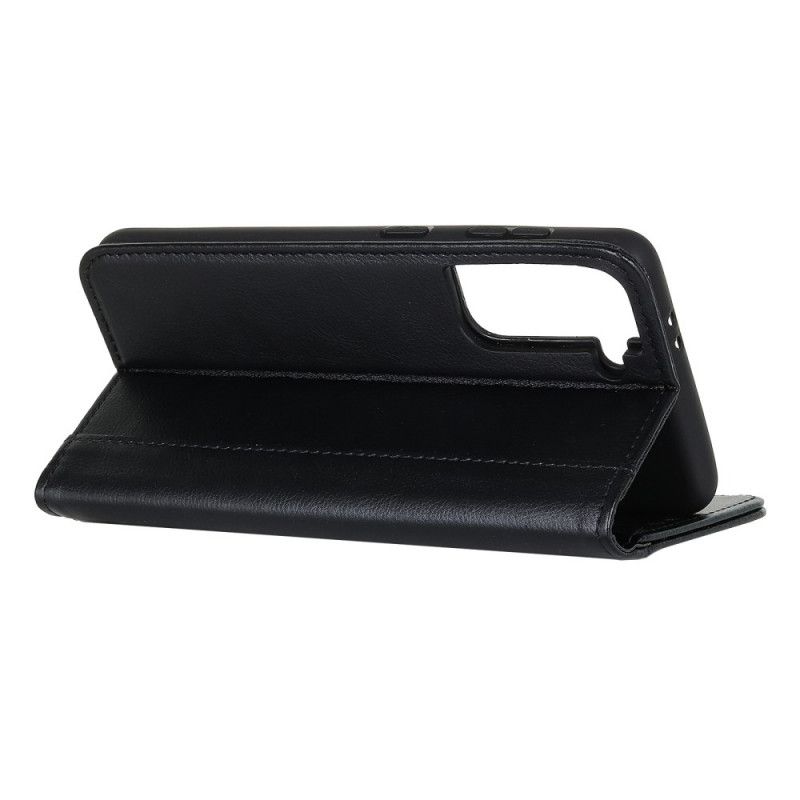 Suojaa tyylikkäästi ja kestävästi Samsung Galaxy S21 Plus 5G: llä tällä litsijaolla nahkainen läppäkotelotyyli (integroidulla lukolla).