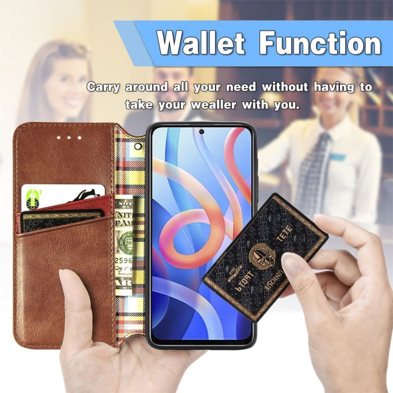 Xiaomi Redmi Note 11 / Poco M4 Pro 5G on uskomaton timanttikuvioisella tekonahkaisella läppäkuorella, joka suojaa puhelintasi tyylikkäästi.