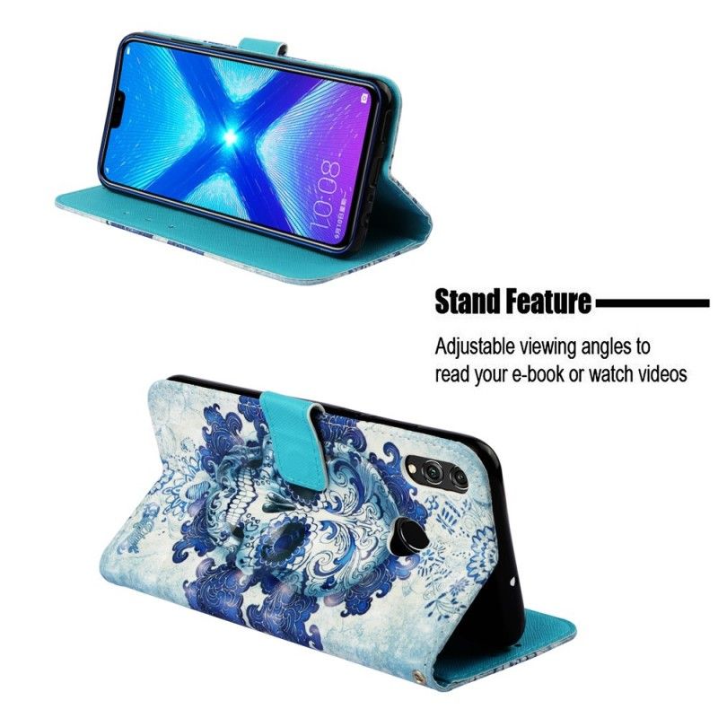 Sininen kansi, koristeltu taiteellinen kallo, joka pukeutuu täydellisesti Honor 8X -laitteeseesi.