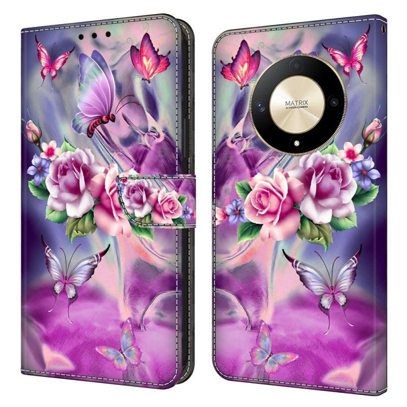 Kotelot Honor X9b / Magic 6 Lite Perhosia Ja Purppuraisia Kukkia Suojakuori