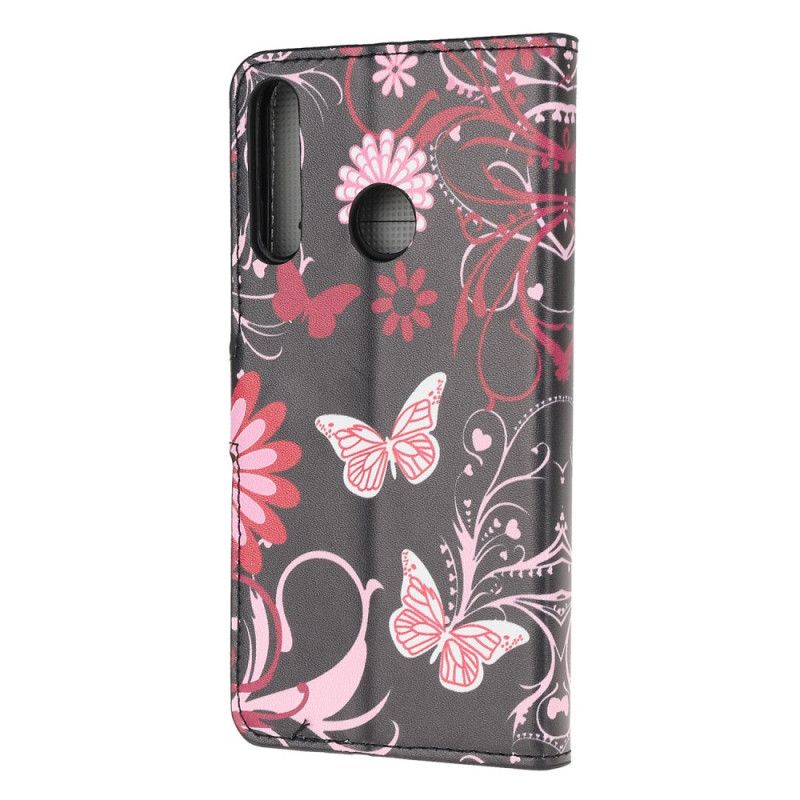 Suojaus Suunniteltu Huawei Y6p -puhelimelle, jonka muotoilu on täynnä perhosia ja kukkia.
