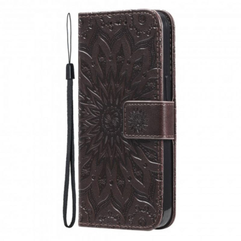 Tämä kuori toimii lompakkona ja kansi taittuu ylös jalustaksi.- Mandala-design / keinonahkainen kansi
