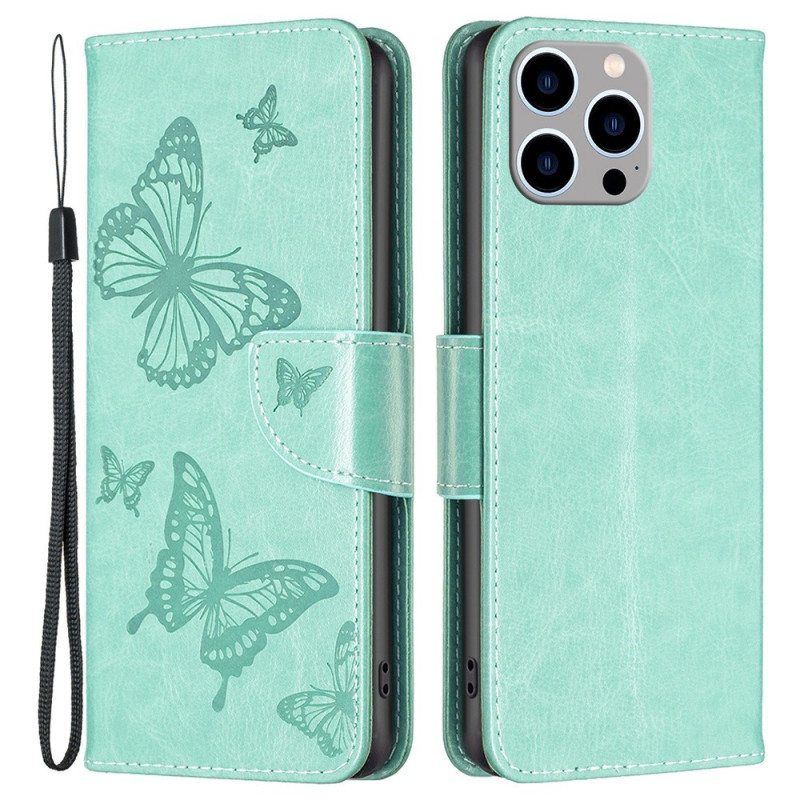 Printed Butterflies -Keinonahkakuoren Mukana Tulee Käytännöllinen Hihna Iphone 14 Pro Maxin Kantamista Varten.
