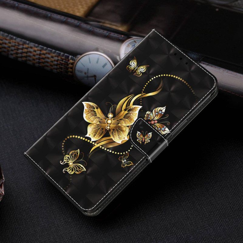 Kotelot iPhone 14 Pro Suojaketju Kuori Kultaiset Perhoset Hihnalla