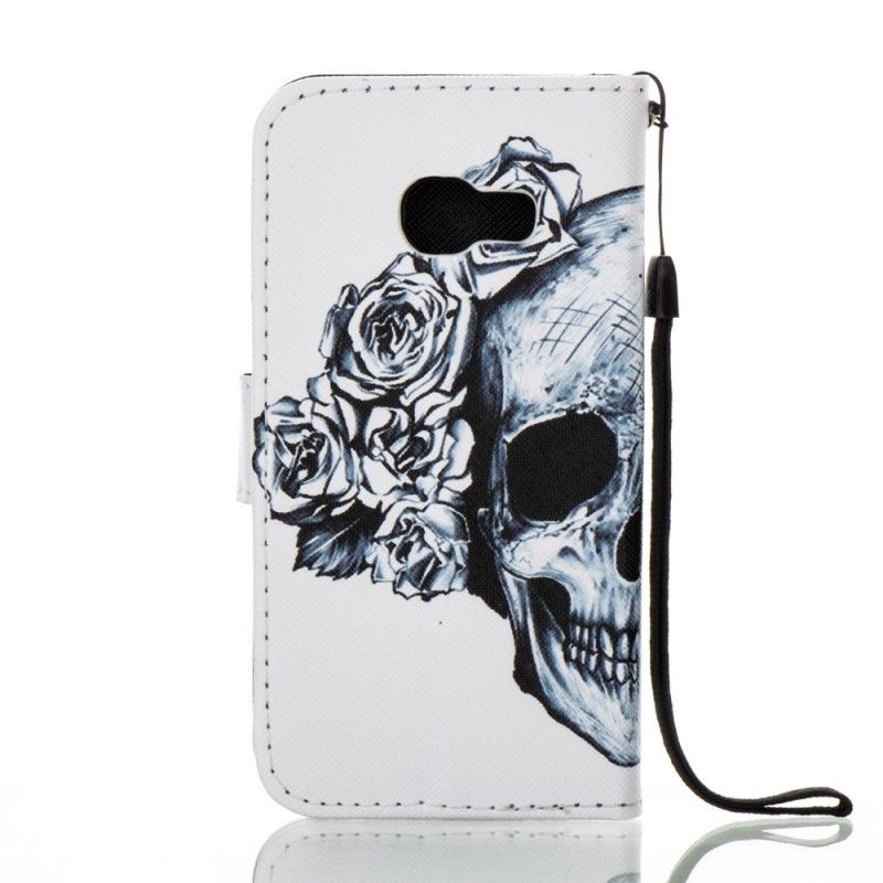 Valkoinen kansi koristeltu ruusujen ympäröimällä kallolla, joka pukeutuu täydellisesti Samsung Galaxy A3 2017 -laitteeseesi.