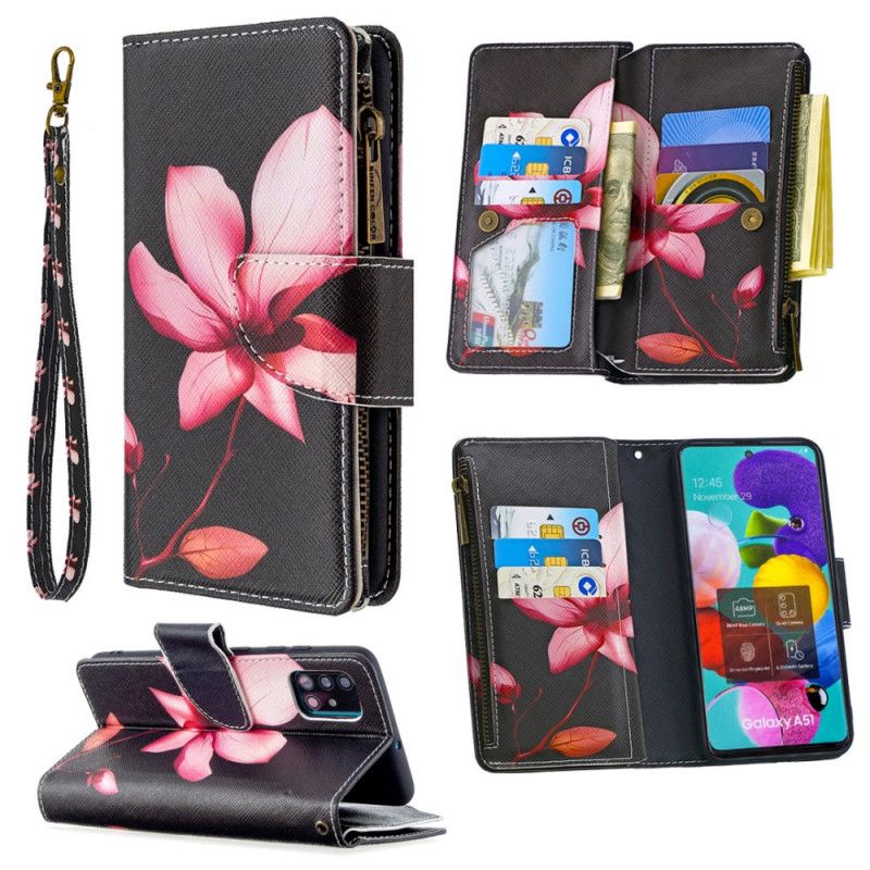 - Koko Samsung Galaxy A51 -suojaus - 9 korttikoteloa, vetoketjutasku, kaulanauha