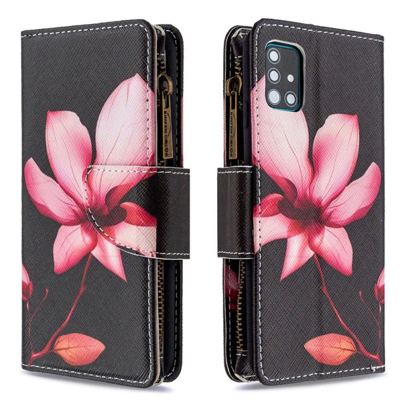 Kotelot Samsung Galaxy A51 Valkoinen Musta Kukka Vetoketjutasku