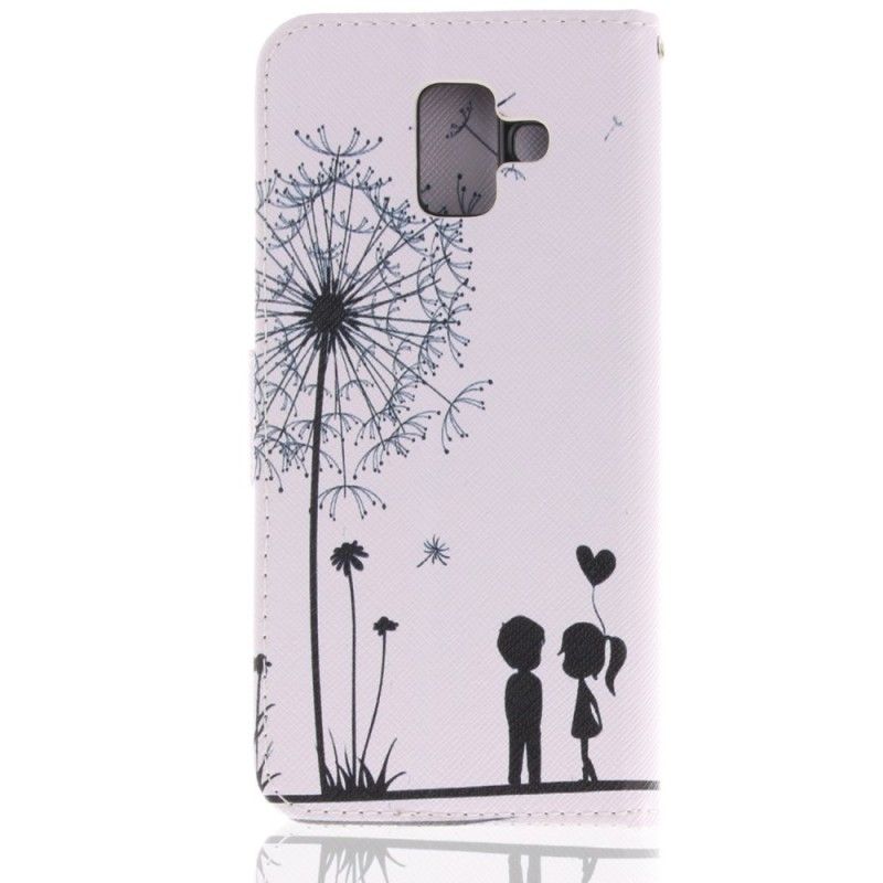 Magneettisella läpällä varustettu Love Dandelion -suoja suojaa Samsung Galaxy A6: ta.