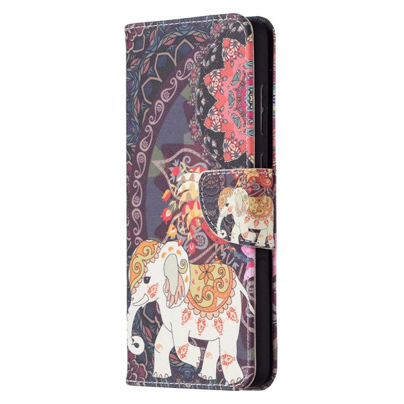 Mandala Ethnic Elephants -kuori suojaa puhelimen lompakkoa turvallisesti Samsung Galaxy A72 4G / A72 5G.