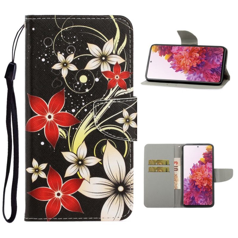 Kotelot Samsung Galaxy S20 FE Värikkäitä Kukkia. Joissa On Remmi