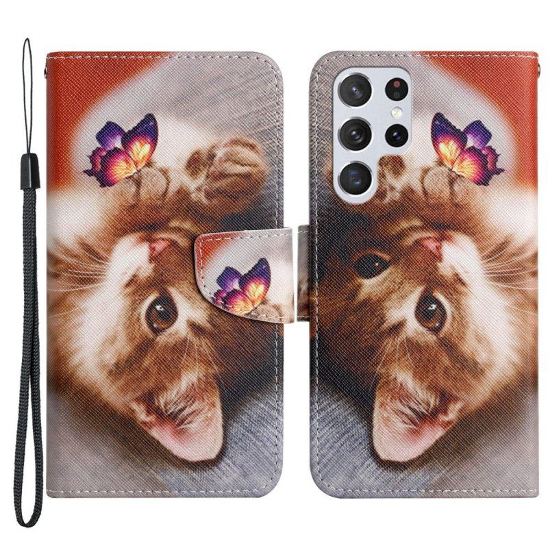 My Kitten And Butterfly -Kuvioinen Keinonahkakotelo Suojaa Täydellisesti Kaikkia Samsung Galaxy S22 Ultra 5G -Puhelimesi.