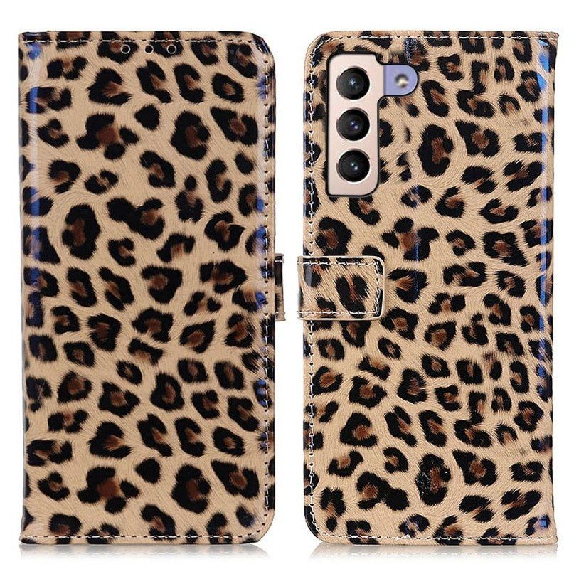 Leopard Skin Effect -Suojakuori Suojaa Koko Samsung Galaxy S23 Plus 5G:Tä Ja Toimii Samalla Lompakkona.