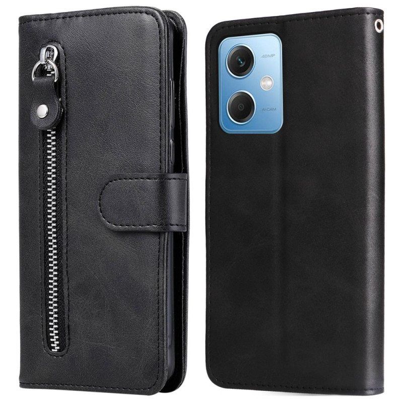 Kaunis Tekonahkainen Kansi, Suunniteltu Xiaomi Redmi Note 12/Poco X5 5G:Lle, Jossa On Kolikkotasku Edessä.