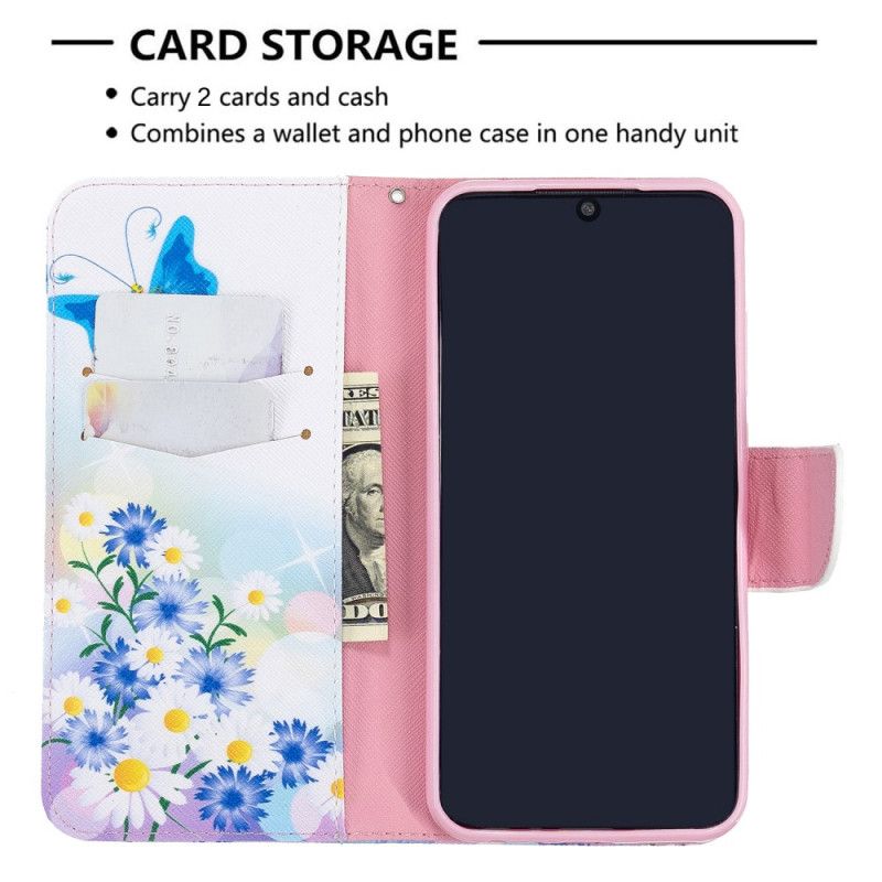 Kotelot Xiaomi Redmi Note 8T Vaaleansininen Magenta Maalatut Perhoset Ja Kukat