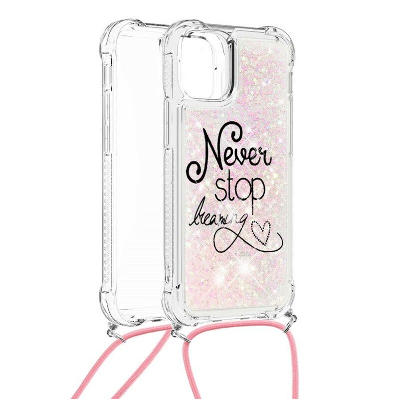 Suojaa ja kuljeta iPhone 13 Prota optimaalisesti tällä super Glitter Never Stop Dreaming kiristysnyörillä.