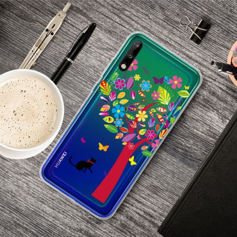 Puun alla oleva läpinäkyvä kissa, joka on valmistettu joustavasta silikonista, sopii erinomaisesti Huawei P40 Lite E / Y7p: n kiinnittämiseen kissan ystäville.
