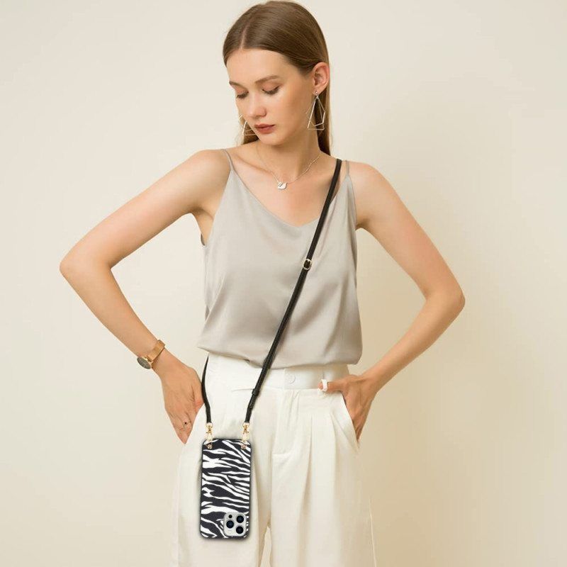 Tämä Olkahihnalla Varustettu Seepra-Ihoefekti Suojaa Iphone 14 Prota Samalla Kun Sitä Voidaan Kuljettaa Eri Tavalla.