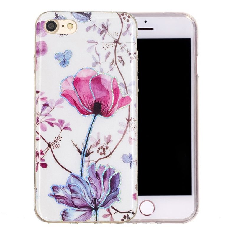 Kaunis joustava silikonikotelo, joka on koristeltu kukilla, kimalteleva muotoilu vain iPhone SE 2/8 / 7 -puhelimeesi.