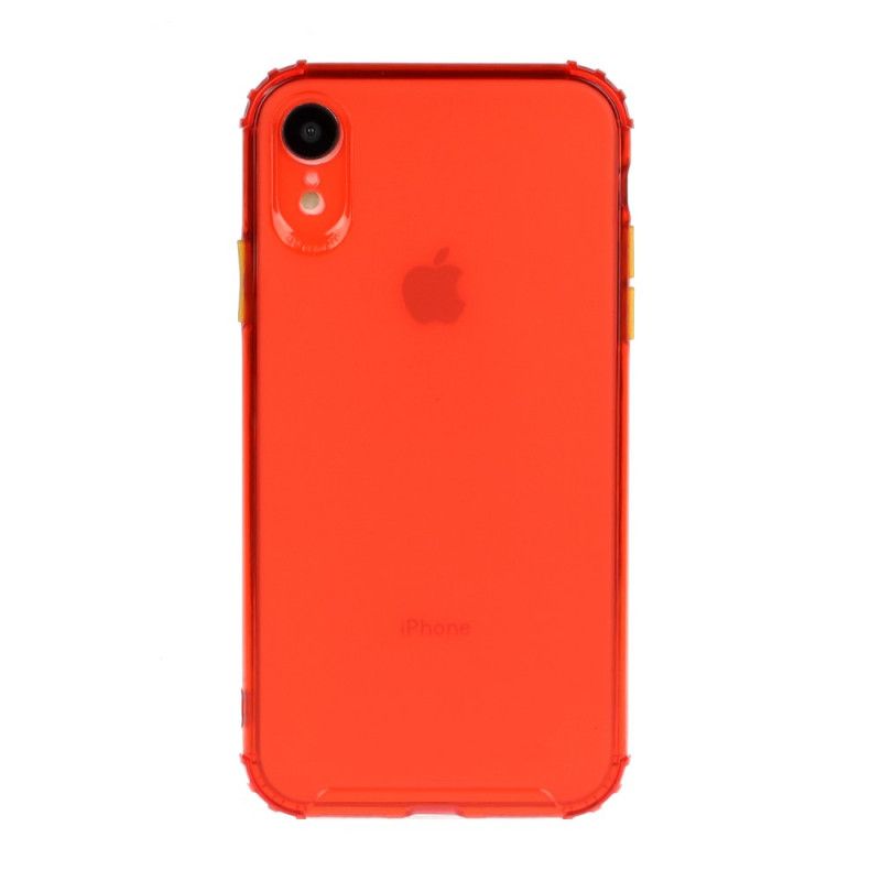 Värillinen läpinäkyvä kuori, vahvistetuilla kulmilla, joka kiinnittää iPhone XR: n täydellisesti säilyttäen samalla alkuperäisen muotoilun.