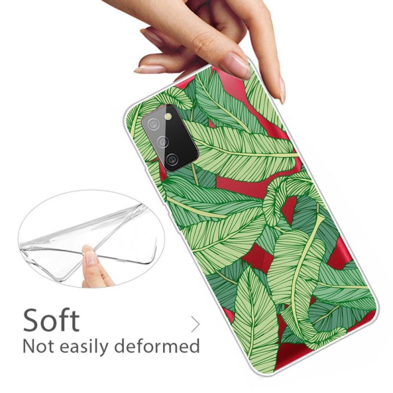 Joustavaa silikonia oleva Foliage-kuori suojaa täydellisesti Samsung Galaxy A02s -laitetta ja antaa sinun nähdä vain kuvion.