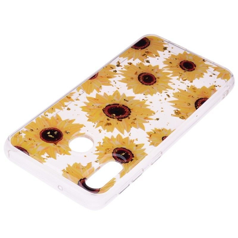 Läpinäkyvä luistamaton kuori, useita auringonkukkia, kukkasuoja Samsung Galaxy A40 -puhelimesi!