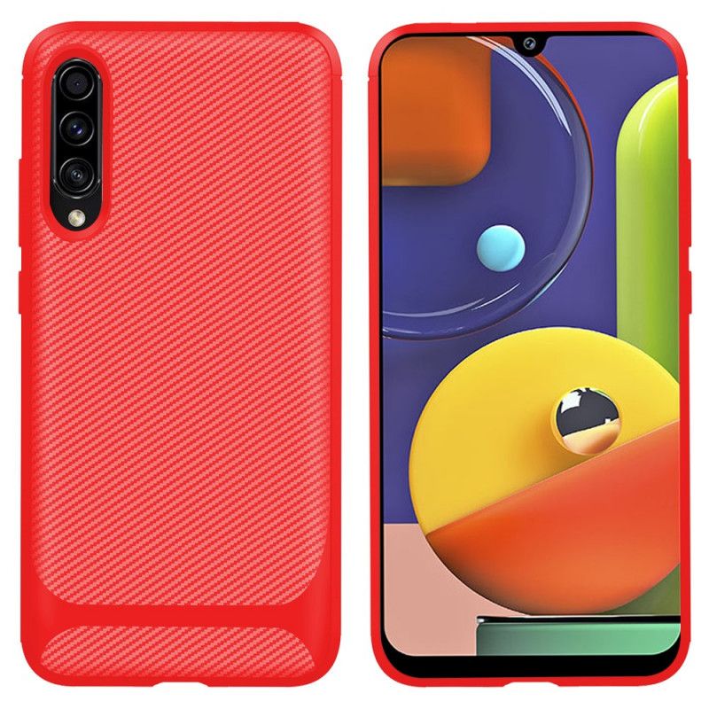 Kuori Samsung Galaxy A50 Punainen Musta Moderni Joustava Hiilikuitu Suojakuori