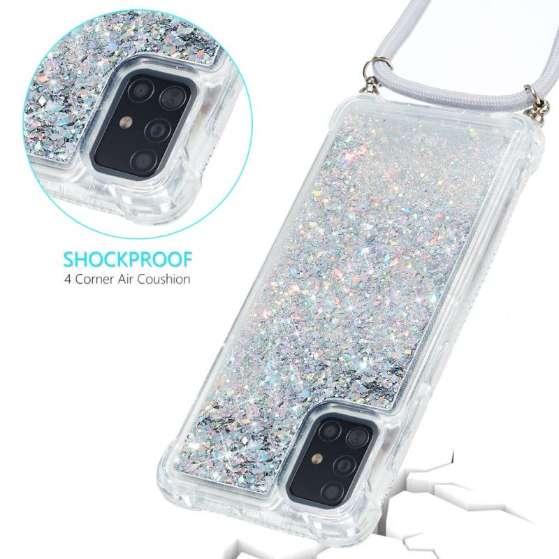 Tämä kuori on valmistettu kimalluksella koristeltu silikoni sisältää pahvin Samsung Galaxy A51: n kuljettamiseen haluamallasi tavalla.
