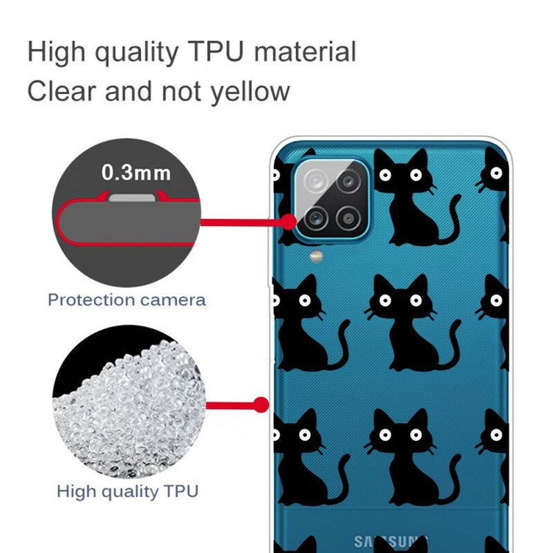 Löydä Ja Suojaa Arvokas Samsung Galaxy A12 Tällä Multiple Black Cats Joustavalla Silikonikotelolla.