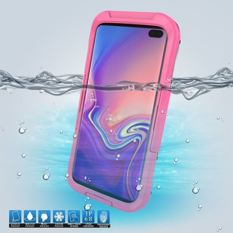 Vedenkestävä kotelo Samsung Galaxy S10: lle, joka sopii erinomaisesti jopa 10 metrin syvyyteen sukeltamiseen.