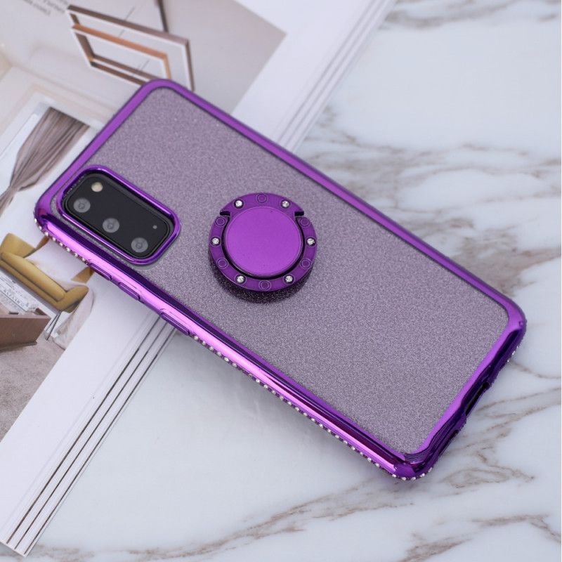 Glitter- ja Diamond Ring-Supprt -kuori tarjoaa hienon ja älykkään tavan suojata Samsung Galaxy S20.