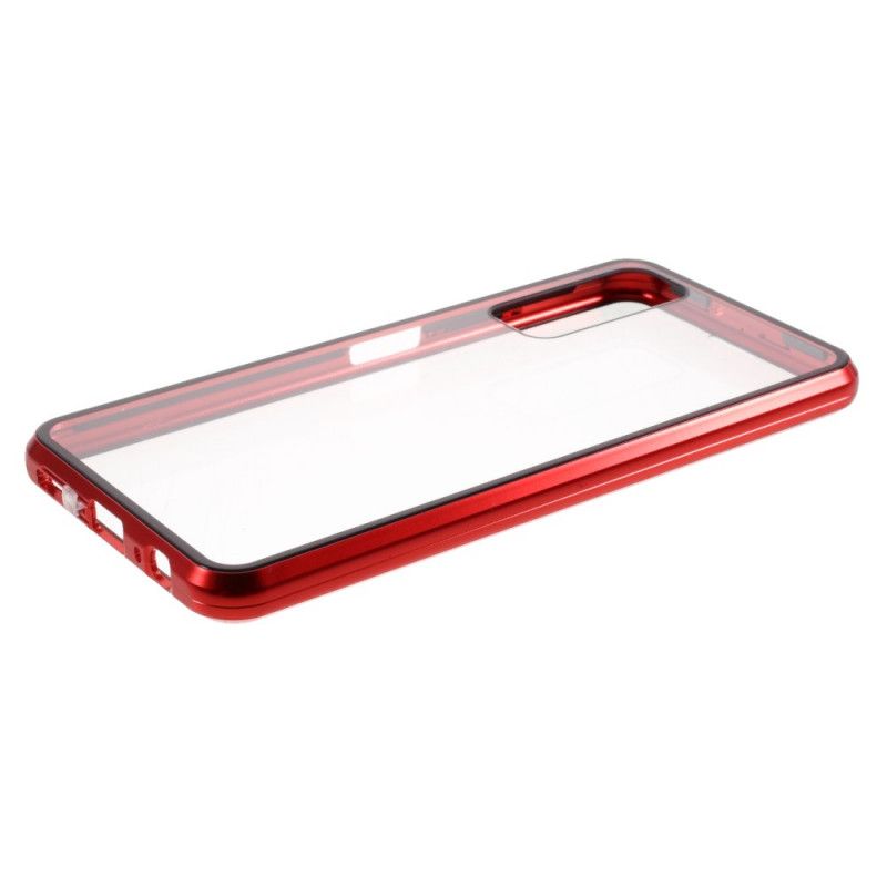 Kuori Samsung Galaxy S21 Plus 5G Punainen Musta Metallireunat Ja Kaksinkertainen Karkaistu Lasi
