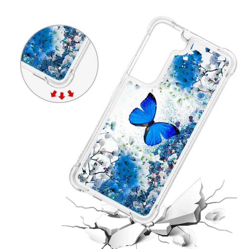 Kuori Samsung Galaxy S22 5G Glitter Blue Perhoset