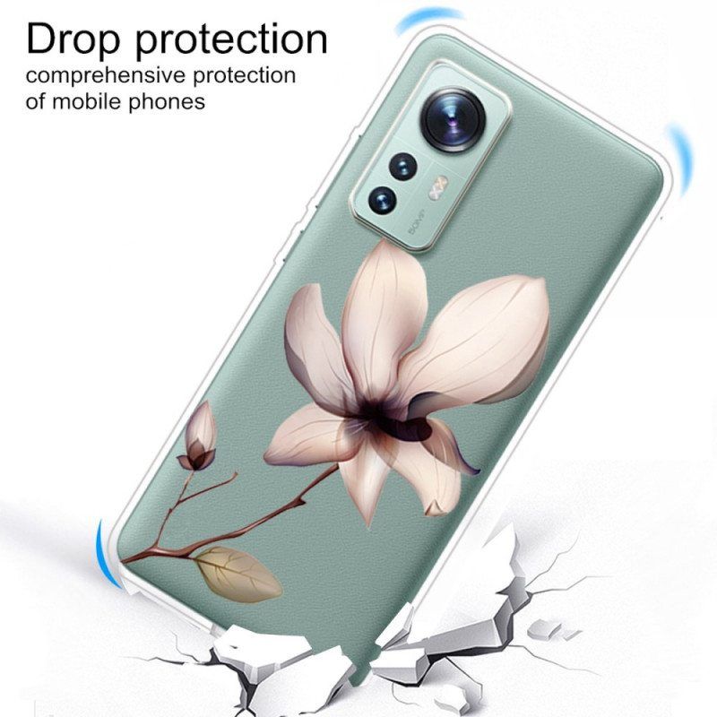 Xiaomi 12 / 12X On Ainutlaatuinen Tällä Läpinäkyvällä Kuorella, Joka On Koristeltu Tällä Upealla Kukalla.