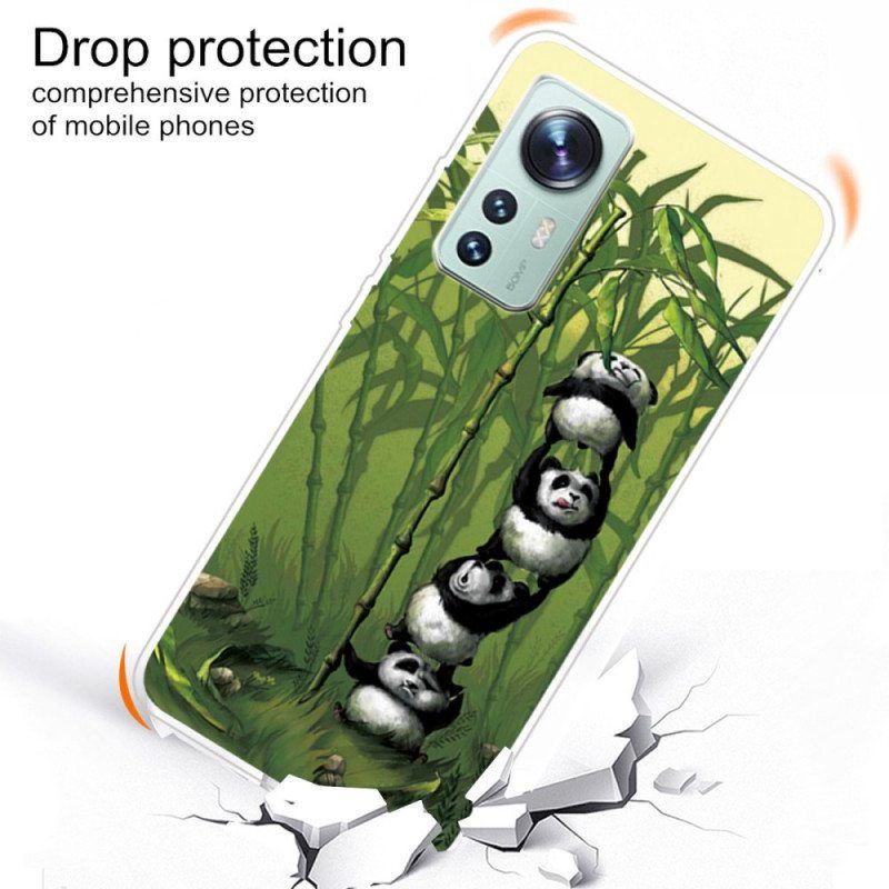 Valitse Tämä Joustava Silikonikotelo, Joka On Koristeltu Pandoilla Ja Joka Kiinnittää Erittäin Hyvin Xiaomi 12 Pron Takaosan Ja Reunat.