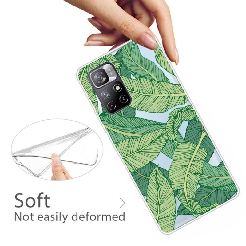 Xiaomi Redmi Note 11 / Poco M4 Pro 5G on koristeltu ja suojattu kasvillisella tavalla tällä kotelolla, jossa on useita lehtiä.