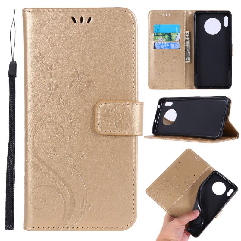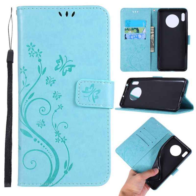 Nahkakotelo Huawei Mate 30 Harmaa Musta Puhelinkuoret Perhosia Ja Kukkia