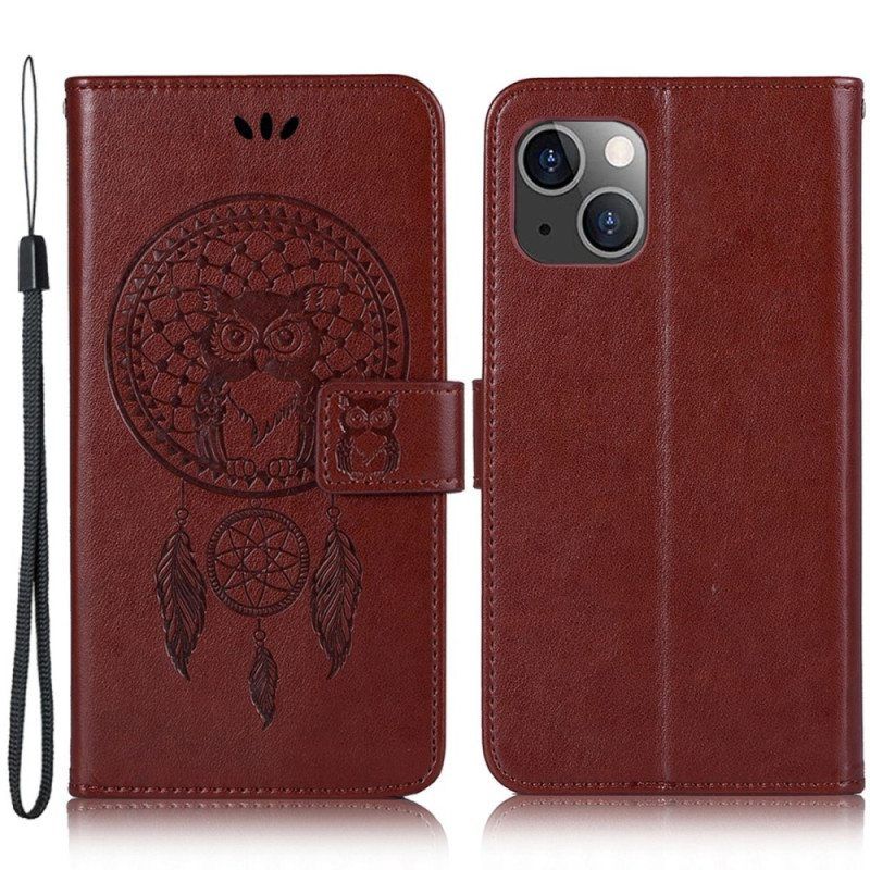 Nahkakotelo iPhone 14 Plus Suojaketju Kuori Pöllöunensieppaaja Hihnalla