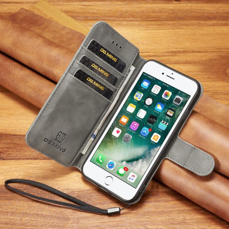 Nahkakotelo iPhone 7 / 8 / SE 2 Harmaa Musta Puhelinkuoret Retro Dg. Vaimennus
